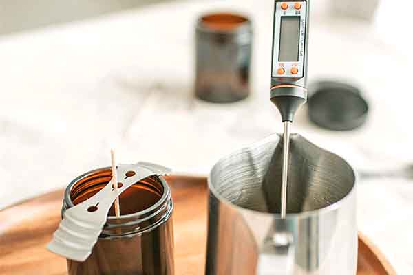 - Thermometer: Temperature control is key in candle making. A reliable thermometer designed for candle making will help you monitor the temperature of your melted wax, ensuring it’s heated to the optimal pouring temperature without overheating. You also need one to know when to add any fragrance oil or color before the pour.